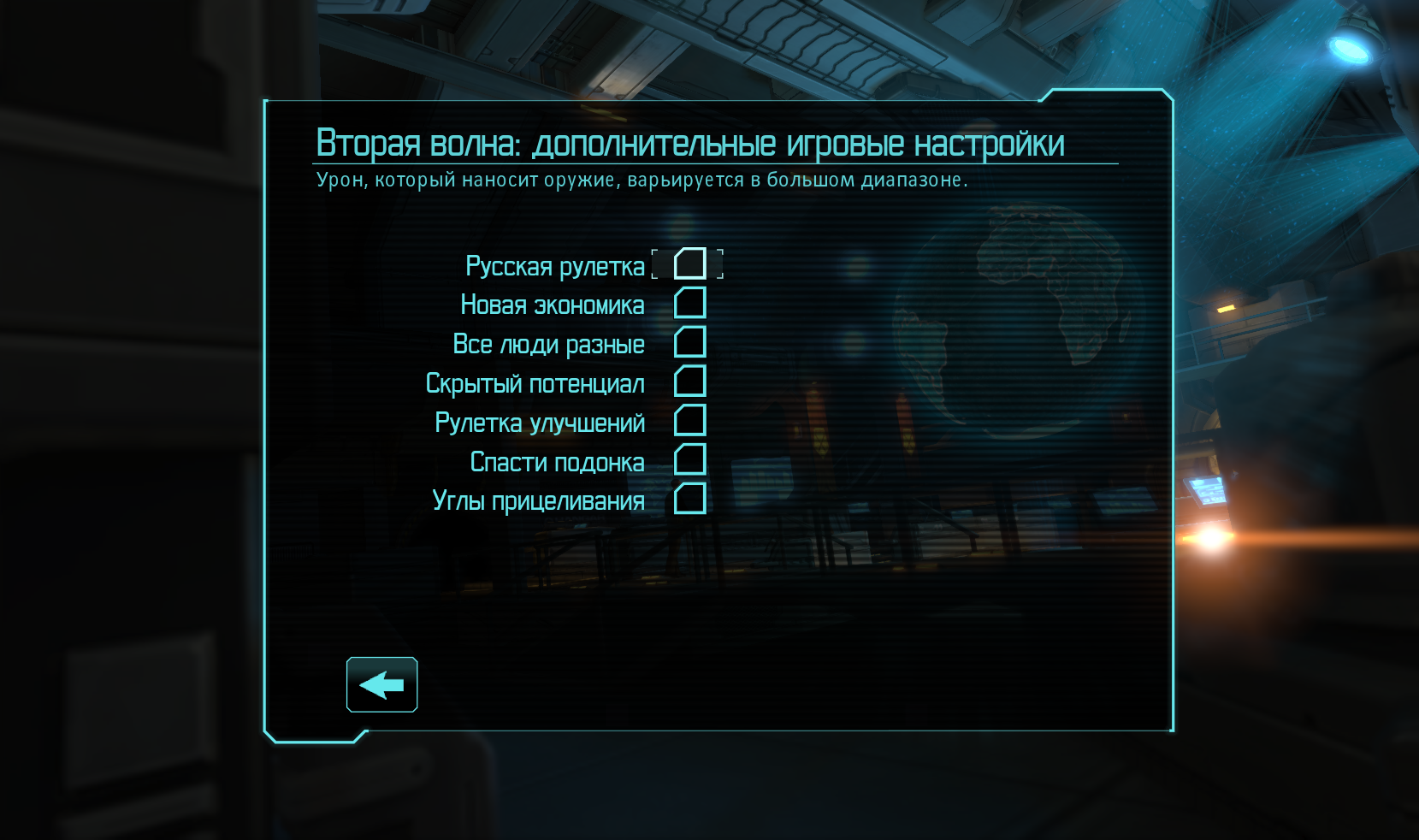 Всего вторая волна имеет 16 настраиваемых опций. Четыре из них доступны с самого начала, для открытия остальных необходимо пройти игру на разных уровнях сложности. Ещё пять дополнительных опций вносит в игру установленное дополнение Enemy Within.