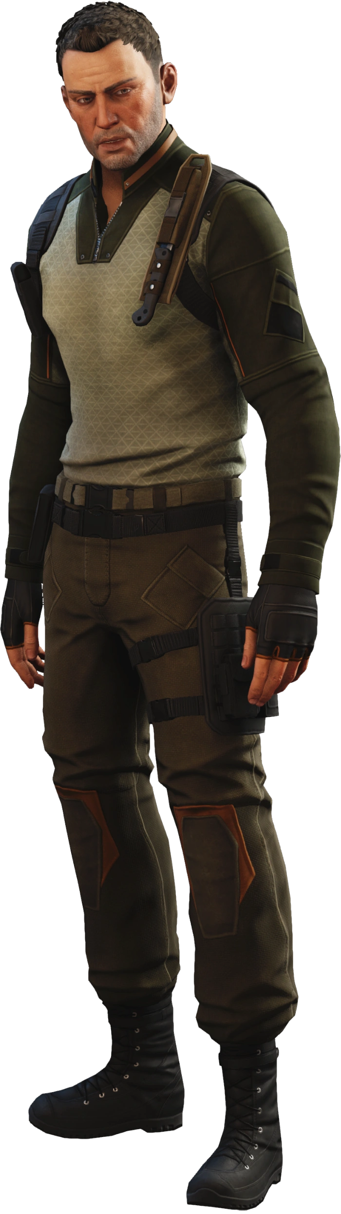 The third time is in the Tactical Legacy Pack, where he is a fully controllable player unit, accompanied by a squad of fellow resistance operatives. He is a Ranger, wielding the weapons appropriate to the class.