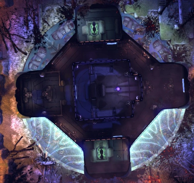 The Overseer Crash Site mission takes place on one of four randomly selected maps. They are nearly identical to those used for Large Scout crash site missions, but the Overseer UFO has a different internal layout based around a large central room with only one access door. Three of the four maps are forested areas and feature plentiful cover provided by trees, while the fourth is fairly barren but contains many hills and valleys.